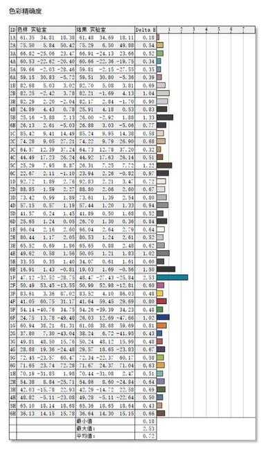 色彩精确度方面,HKC VG273QK测试的48种颜色平均△E值为0.72,当△E值