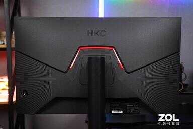 HKC VG273QK显示器背面则延续了猎鹰系列的家族式设计,两侧对称分布的细密线条形成了“猎鹰”的羽翼,居中的红色线条不仅巧妙的形成头部线条,还为显示器的整个背部增添进了一丝灵动感。
