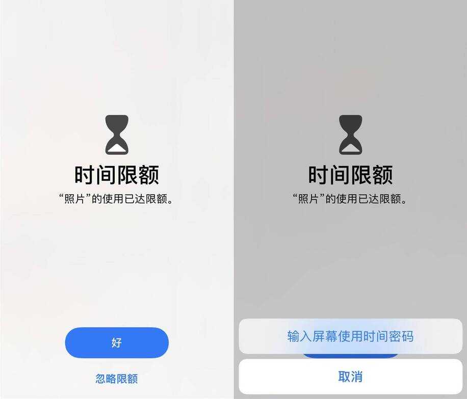 如果这个时候我们点“忽略限额”,“请求再使用 1 分钟”,这样一共 2 分钟以后,系统就会弹出需要密码才能再使用这个应用啦。