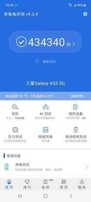 在游戏测试之前,我们先对其进行了基准测试,其中安兔兔跑分成绩为434340分,3Dmark SLING SHOT EXTREME中OpenGLES 3.1得分为3635分、Vulkan得分为3538分。三星Galaxy A53的综合跑分成绩虽然谈不上特别优秀,但基本可以满足大家的日常使用。在游戏实测方面:
