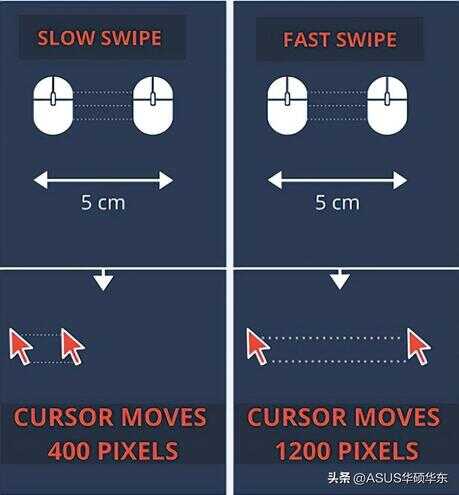 鼠标加速功能启用时,当你快速移动同样的5cm时,可能实际移动的像素有几倍差距