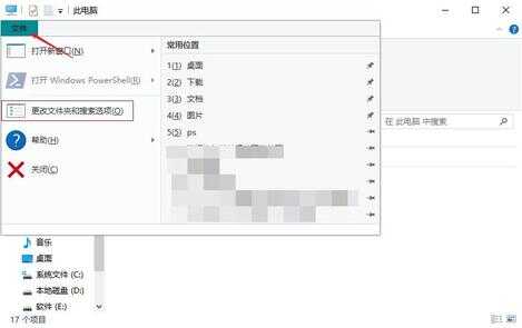 在屏幕左上角,找到【文件】,用鼠标左键单击,选择【更改文件夹和搜索选项】。