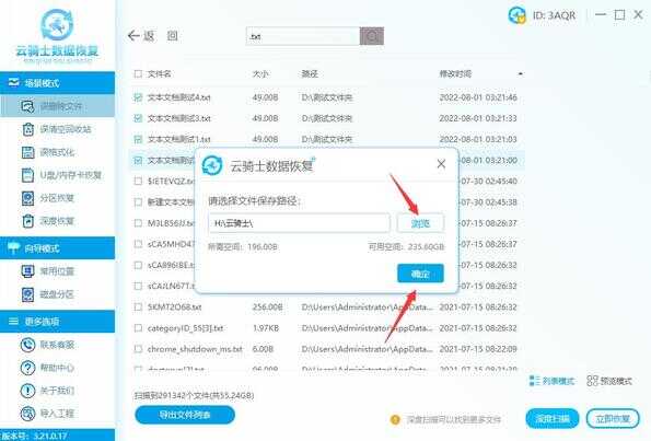 这时我们可以使用云骑士数据恢复软件进行恢复,具体操作步骤如下: