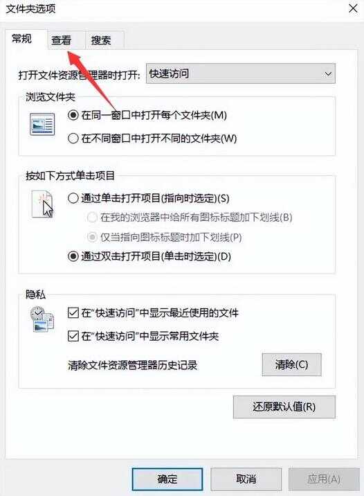 在弹出的文件选项对话框左上端,找到【查看】并用鼠标点击。