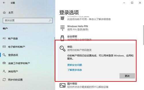 3、 接着,点击左侧登录选项页面,右侧则会显示对应的密码设置