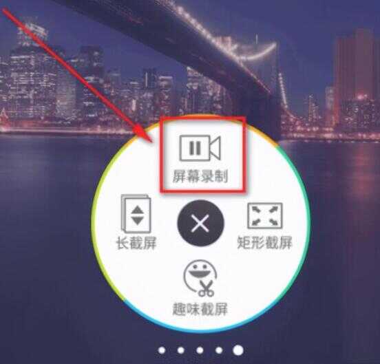 2、点击“超级截屏”后,在弹出的圆形框中选择“屏幕录制”功能,点击进入。