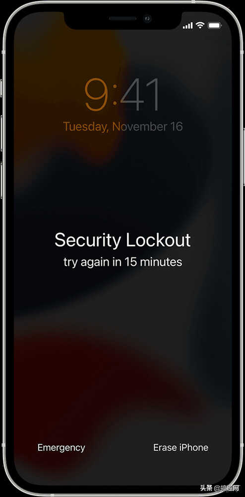 1.尝试在设备的锁定屏幕上输入锁屏密码,直到设备提示您稍后再试。如果可以的话,请重复这个步骤,直到您在屏幕底部的角落看到“抹掉”选项。