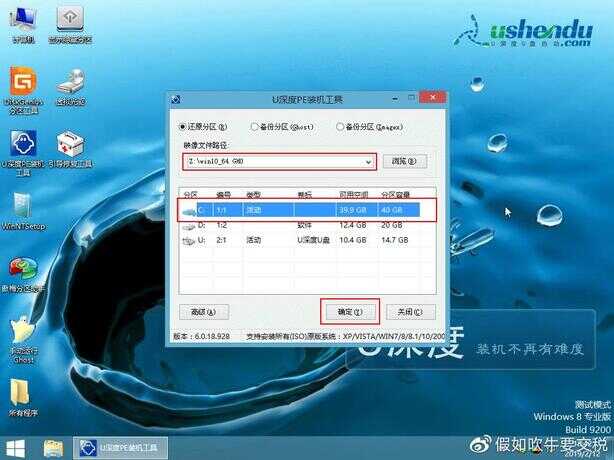 打开u深度安装程序选择安装的盘符点击立即安装