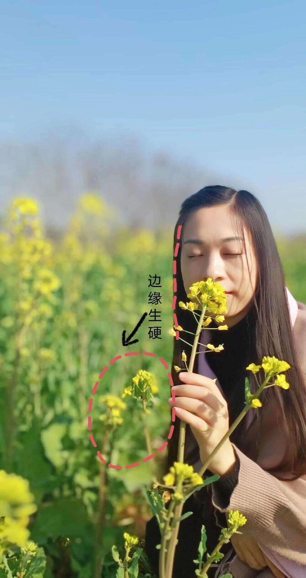 首先,需要先观察人像模式,照片中主体与背景的这个边缘,如果边缘识别比较自然,我们可以适当增加一些模糊感。