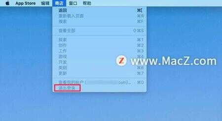 1.打开Mac App Store ,菜单栏上点击「商店」,点击「退出登录」。