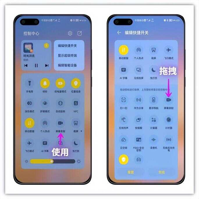 有时候会隐藏起来,需要点击右上方的【编辑快捷开关】,将这个按钮拖拽到上方,便于使用。