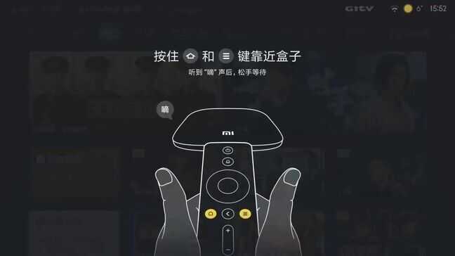 小米设备的遥控器比较简单,如果在排除遥控器电池正常等问题后,尝试同时长按遥控器的“home”键及“菜单”键,直至电视上出现如下图的提示,听到“嘀”声后松开遥控器,等待重新配对成功后即可。