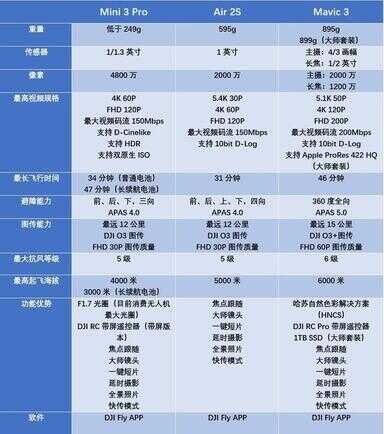 最后,我们来用一个参数表来对比一下三台无人机: