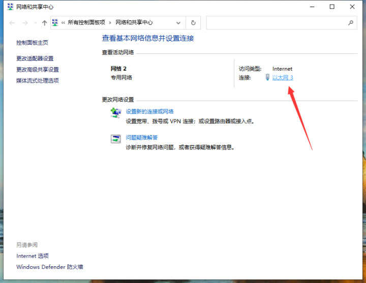 4、在网络和共享中心找到自己电脑已连接的网络,点击进入。