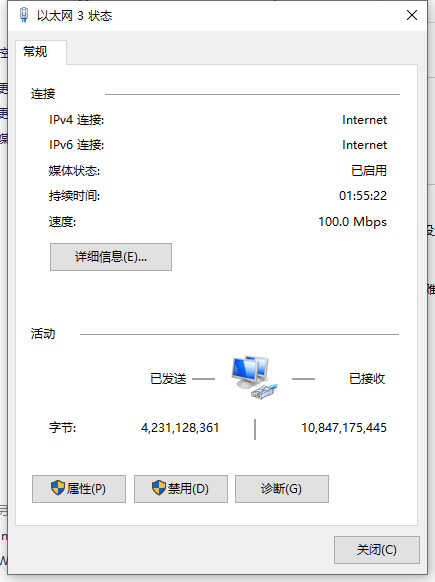 5、在接下来弹出的窗口中我们就可以看到这个以太网的常规信息了,速度为100Mbps。
