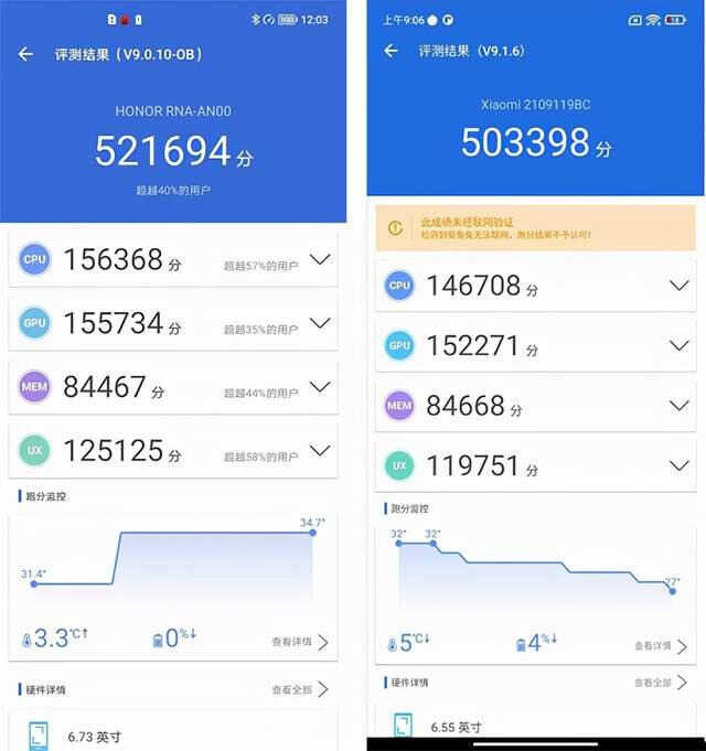 而搭载了天玑1200的OPPO Reno6 Pro安兔兔的跑分成绩却能够达到70W+的成绩,可能不少人对这个成绩没什么概念。要知道搭载了骁龙888的三星S21的跑分成绩也只是在69W+左右,可以说作为中端处理器的天玑1200能够跑到与高通8系相当的水平,在性能上是有足够的保证。