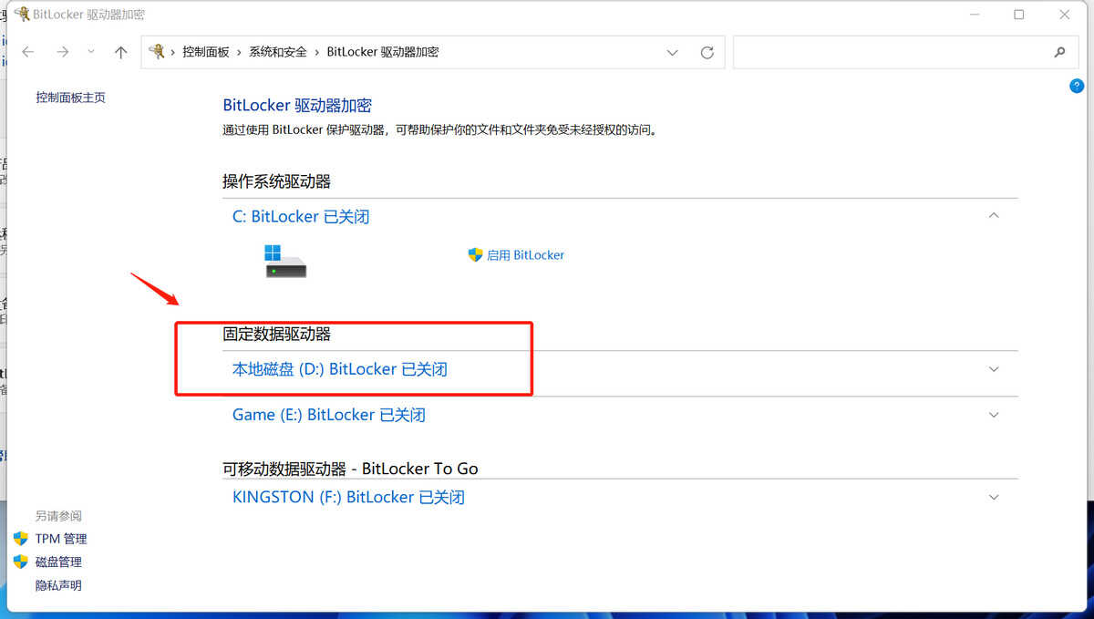 电脑D盘显示黄色感叹号是怎么回事?最近有用户在启动Win11系统的时候却发现D盘中有个黄色感叹号,不知道是什么原因,其实这可能是系统中的加密功能BitLocker驱动器加密造成的,对此在这里就来告诉大家Win11系统D盘有个黄色感叹号的解决方法。