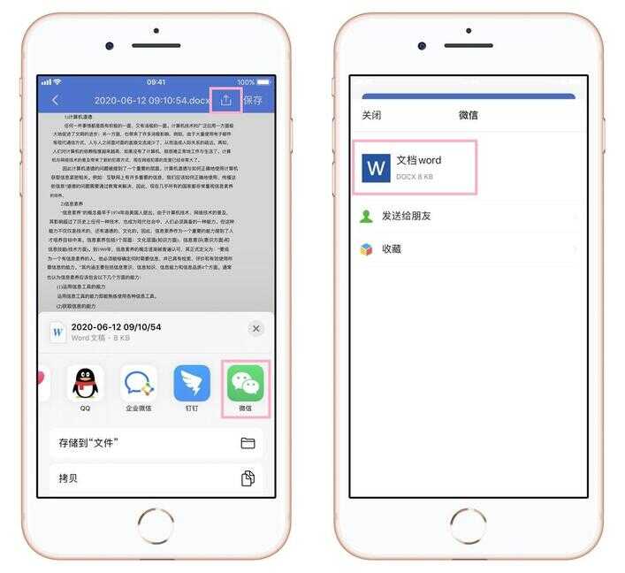 此时,纸质文档就已经变成了Word,你可以点击右上方的分享按钮,选择发送给微信好友,可以看到这是Word文档。