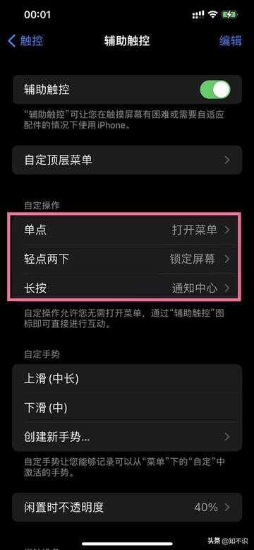 悬浮球截屏:点击设置-辅助功能-触控,开启辅助触控,在自定义菜单中,选择一种操作方式,设置为截屏即可。