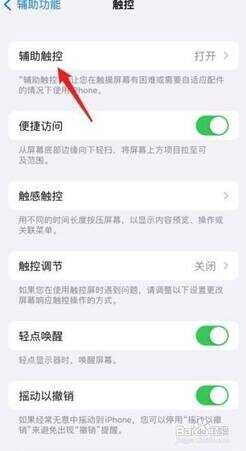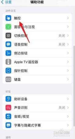 在辅助功能界面,点击触控进去。