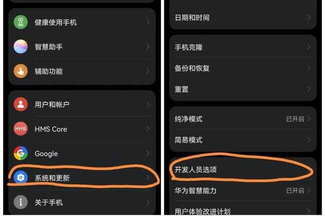 返回到设置界面找到系统和更新点开下拉找到开发人员选项。