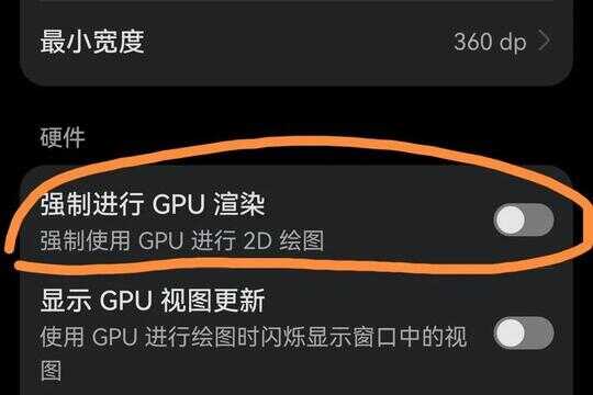 点开发人员选项,下拉找到强制CPU渲染,点开