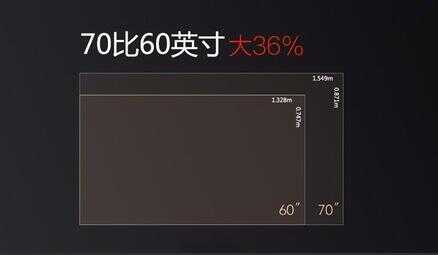 至于70英寸到底有多大呢?我们看个数据,70英寸对应16:9分辨率的长和高尺寸是1.549×0.871米,而60英寸对应1.328×0.747米,显示面积差距有足足有36%,可不是我们从字面上看到的“10英寸”差别哦,如果对比我们常见的55英寸电视,显示面积差更是达到了62%。在一间观看距离大于3米的客厅中,使用70英寸电视所获得的视野范围要远远高于50-60英寸,类似于我们去电影院追求最佳临场感观影,影片的氛围在大屏幕上会得到更充分的视觉渲染。