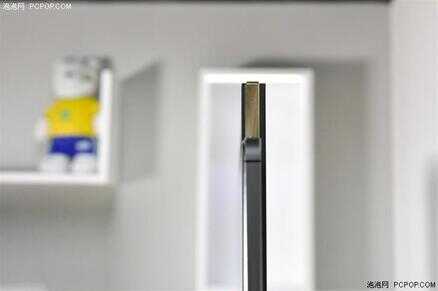 机身的边框依旧采用金属材质拼接处理,接缝精度较高。在边框的最外侧是以双45°钻切处理的装饰条,金色、晶格纹理,想不把视觉中心落在这抹耀眼的边框很难,它是整机外观的亮点之一。