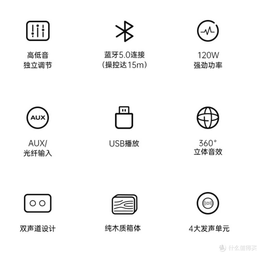 输入方式:蓝牙、同轴、光纤、AUX、USB