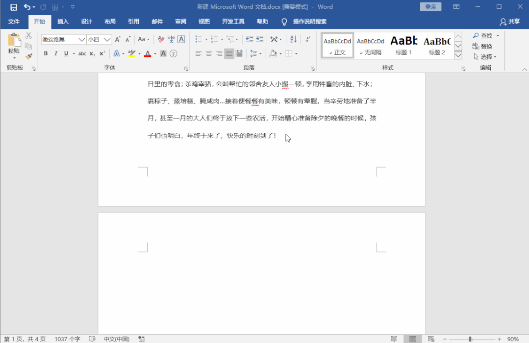 当空白页在文档的中间,就有些麻烦了,这时候不要一直按删除键。将光标移动到空白页上方的最后一个字后面,然后按住【Shift】选中整个空白页,最后按下【Delete】,这样空白页就被删除了。