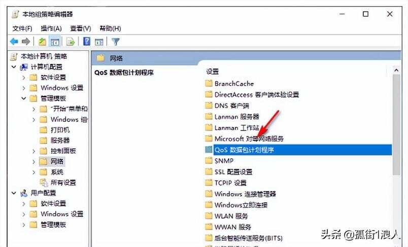 3、再点击右边的“Qos数据包计划程序流程”。