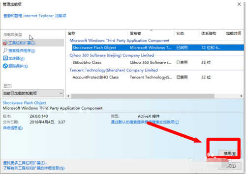 3、在管理加载项界面,找到加载类型“工具栏和扩展项”,如下图: