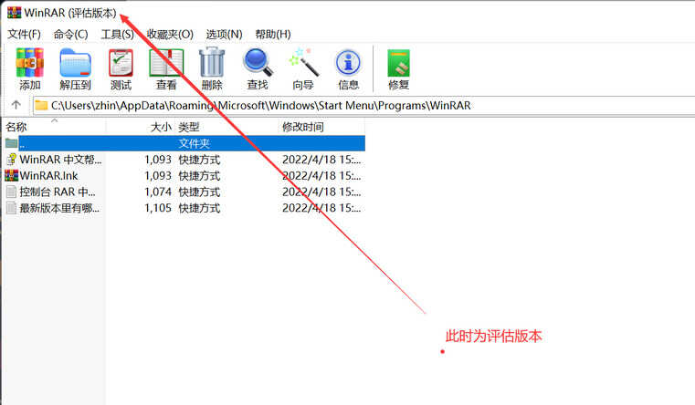 此时根目录下没有rarreg.key文件,且打开WinRAR.exe显示为评估版本