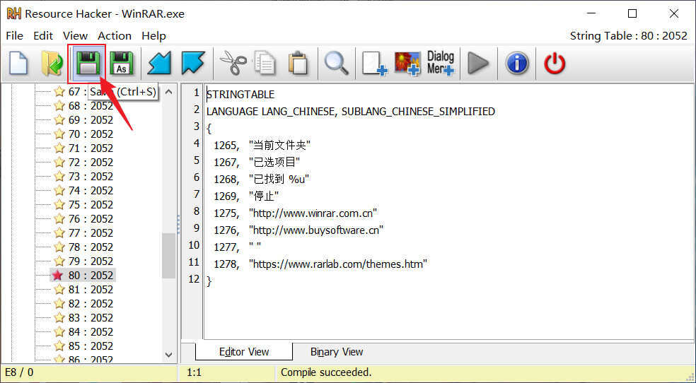 - 继续点击字符串表 -> 80:2052 -> 删掉最长的那行(id为127)