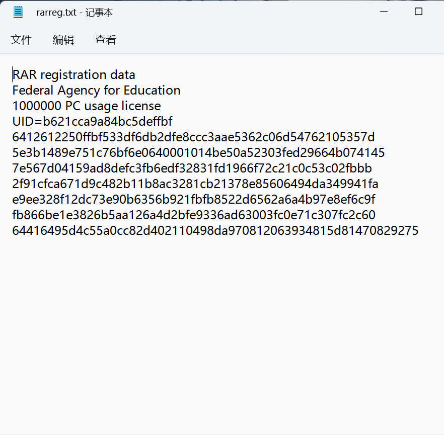 - 保存,重命名(F2),修改扩展名为.key,就会得到一个rarreg.key的文件
