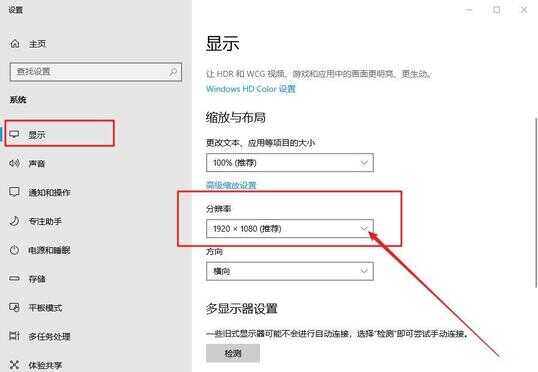 2、 在显示选项卡右侧页面,找到分辨率设置,自行设置合适的分辨率即可