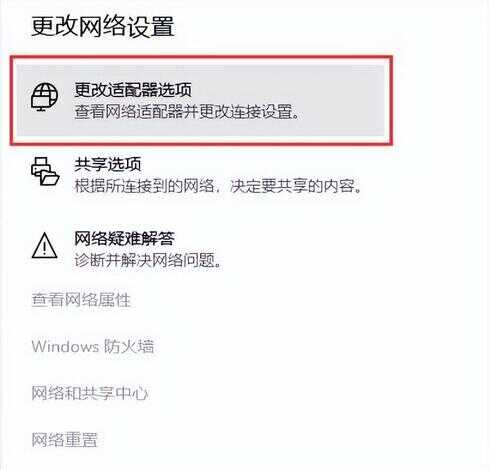 2、在弹出的页面中找到并点击【更改适配器选项】;