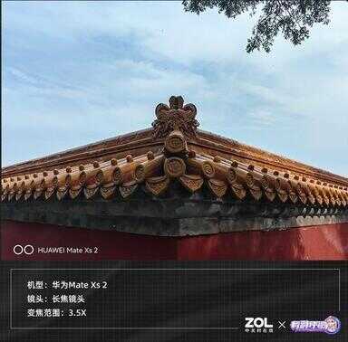 在长焦样张中,得益于其搭载的长焦镜头,在3.5X变焦时Mate Xs 2的样张仍然能保证不错的解析力,对于建筑外部细节的刻画十分到位,屋檐下暗部区域的建筑细节仍能得到准确呈现。