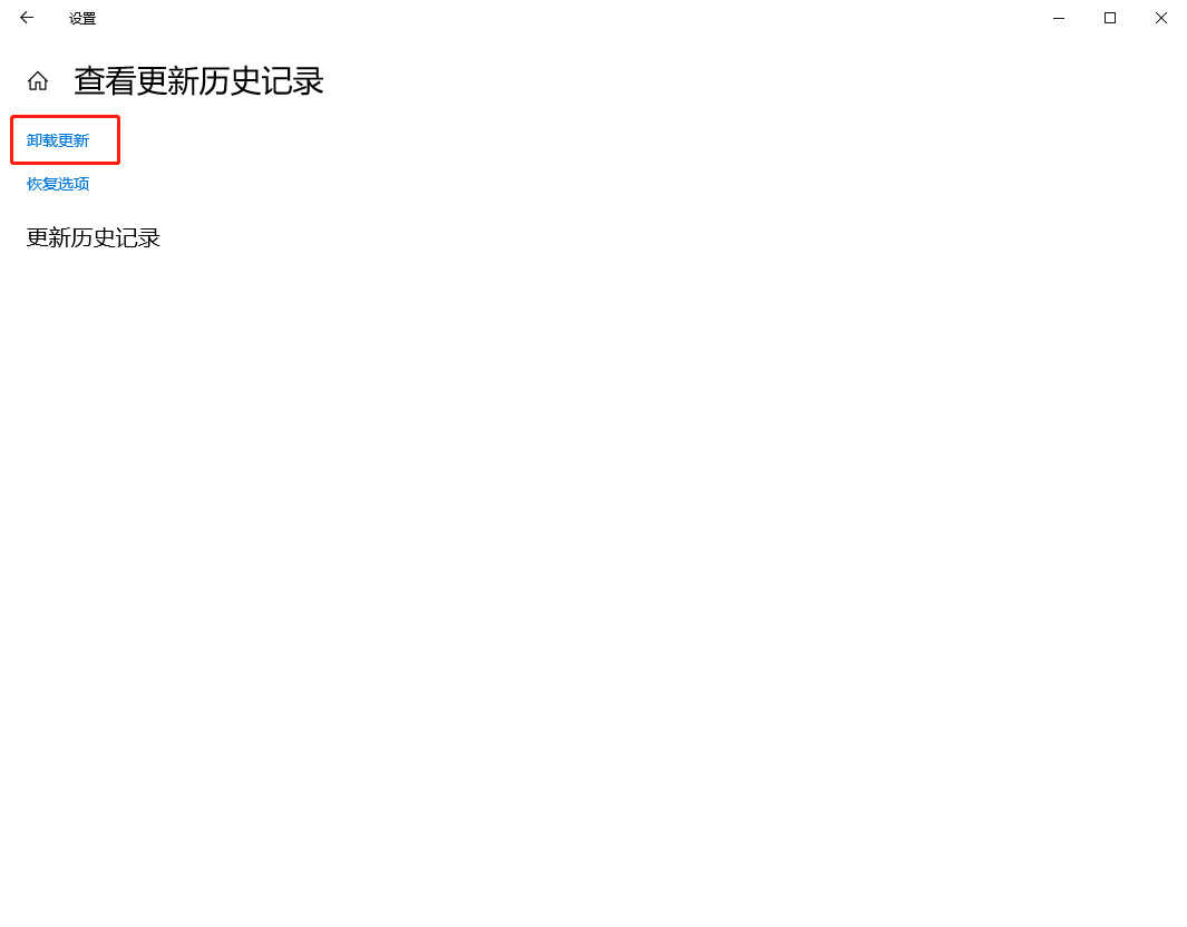 打开设置——》更新和安全----》 Windows更新----》“查看更新历史记录----》卸载更新