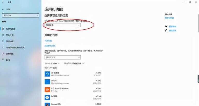 依次点击“开始”-“设置”,打开windows设置窗口,然后点击“应用”选项,最后找到“选择获取应用的位置“,点击”任何来源“即可。