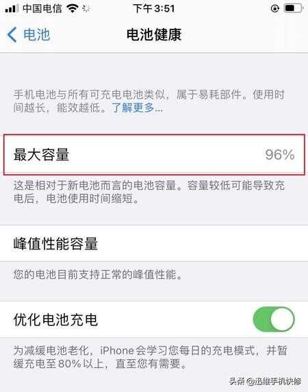 其实这个电池健康度是通过算法算出来的,并不准确。所以,有小伙伴会遇到手机上和爱思上查到的健康度不同,有的一个月电池效率掉了好几个格,有时又奇葩的一格也不掉的情况。