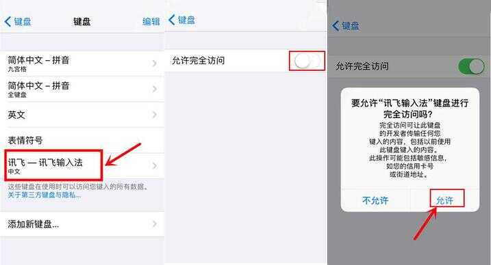 如要添加其他输入法,也可以先下载好,然后在添加新键盘这里添加新下载的输入法。然后要在添加的输入法中设置为“允许完全访问”才可以正常使用。