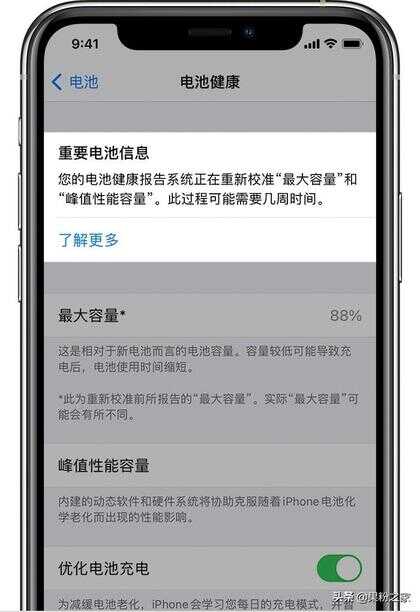第三:打开设置--电池--电池健康--把优化电池充电打开!这个设置可以减缓iPhone电池老化,进一步提高iPhone寿命!