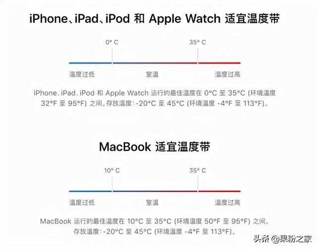 苹果官网上给出优化电池健康和延长电池寿命的建议:就是不要长时间让设备处于高温或寒冷的环境中,都会对电池寿命或者续航能力有不同程度的影响。特别是高温环境下,对电池的损伤是永久性的。