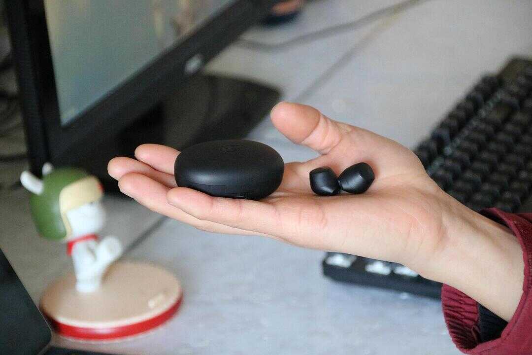 从外观上看,JEET Air2真无线蓝牙耳机给人的感觉就是特别小巧的感觉,并且它的重量也是非常的轻,一只耳机仅只有3.4克左右,所以戴在耳机上就没什么束缚感,这也是这款耳机主打的舒适度原因,加上它这种半入耳式的设计,长时间佩戴也不会出现耳朵轮廓有那种痛疼感。