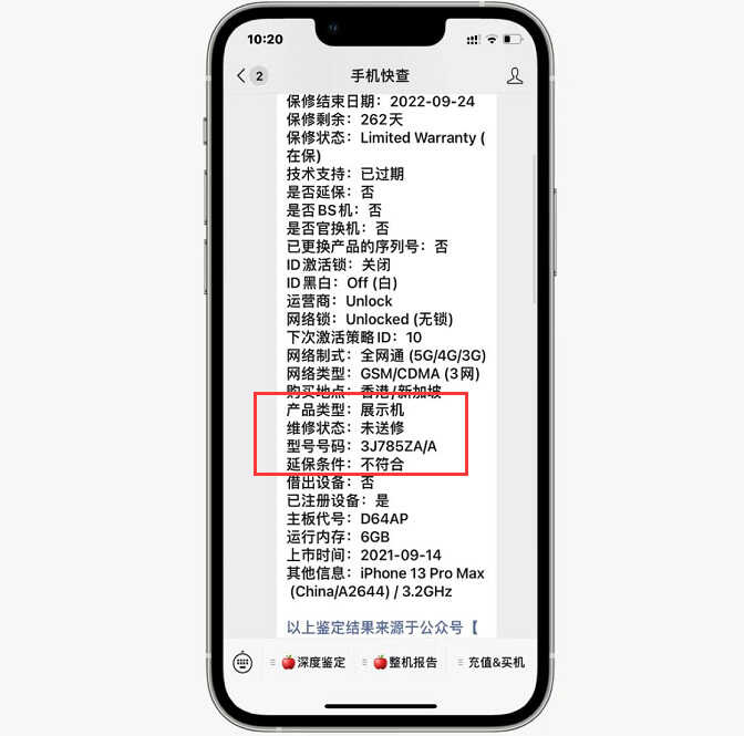 怎么辨别展示机呢?由于现在很多商家都喜欢改底层数据,把展示机的数据改成零售机或者官换机,然后再高价出售,唯一的办法就是通过该机的序列号查询整机报告。如果产品类型是“展示/演示机”,那就是演示机。