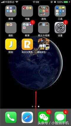 向上滑动屏幕底部,调出底部快捷菜单栏。