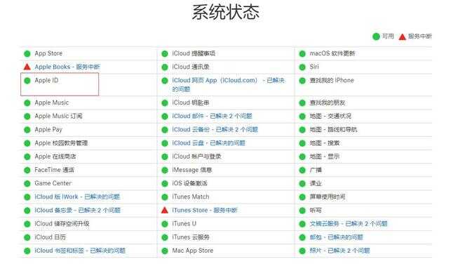 1.查看苹果官方“系统状态”页面上的列表。查看您所在国家或地区的 Apple ID 服务是否出现中断。