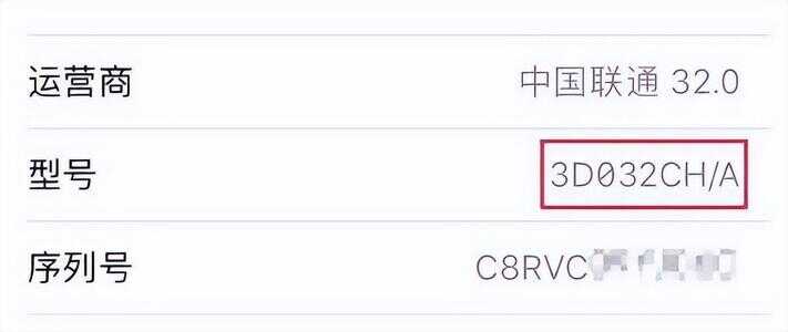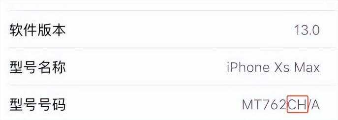鉴别方式:进入「通用」-「关于本机」中,获取手机型号,图中的「CH」就代表国行版本。