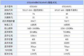以下是GTX1650和GTX1050Ti的规格对比
